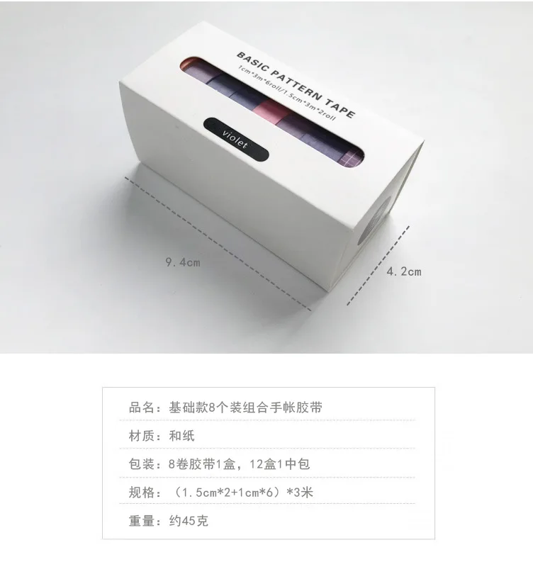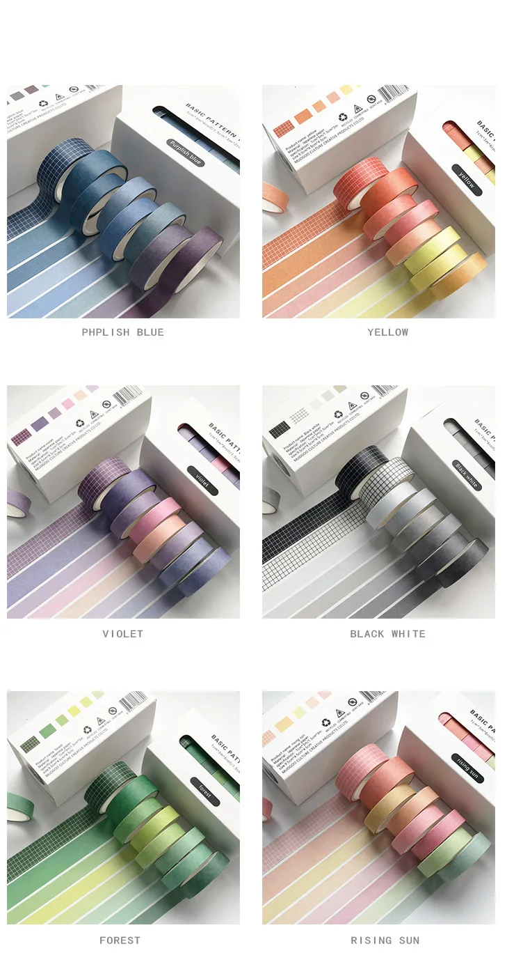 Name: 8pcs/box Basic Color Washi Tape Simple Lattice Hand Account Kawaii Masking Tape School Office Supplies Stationery