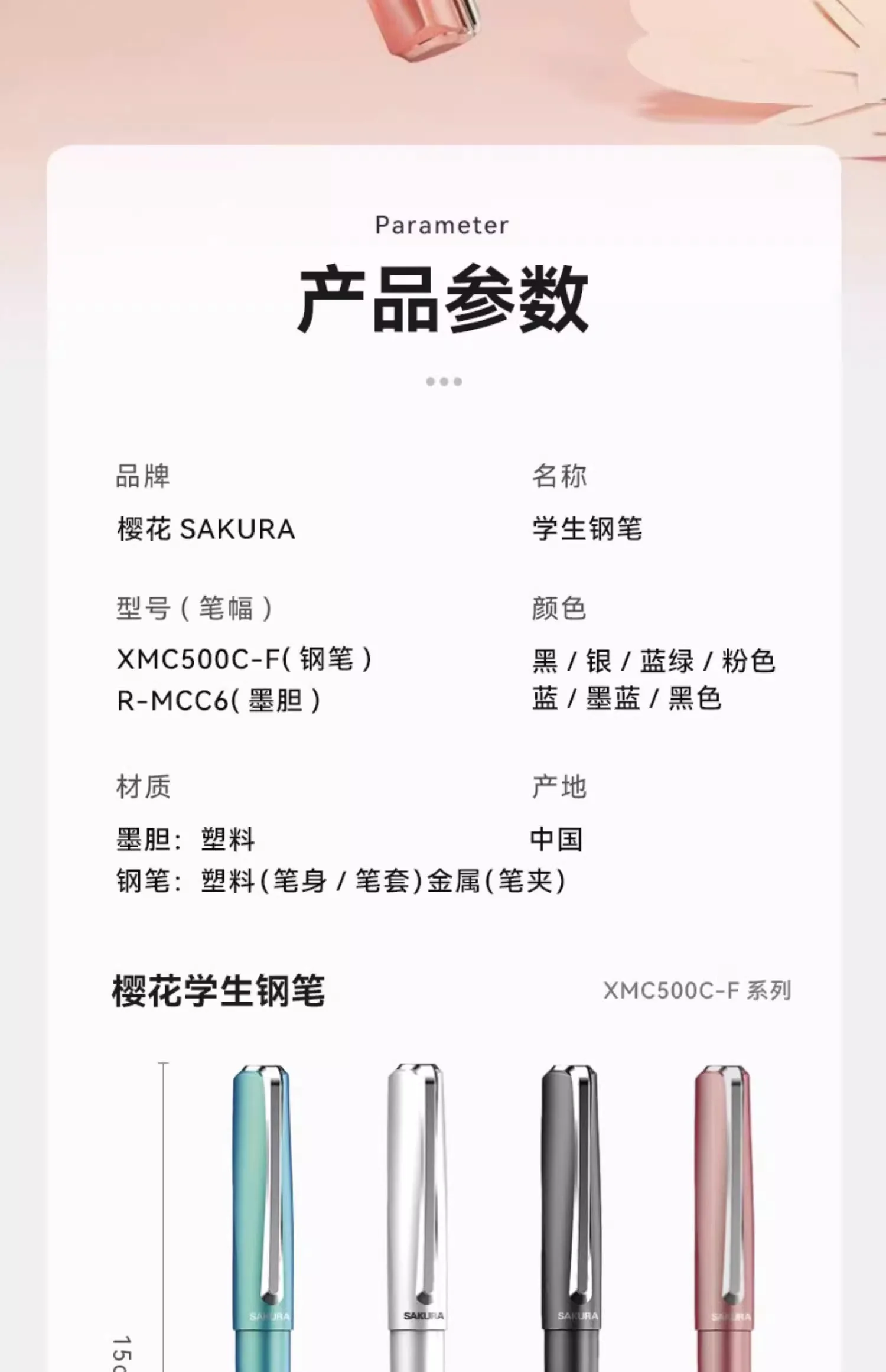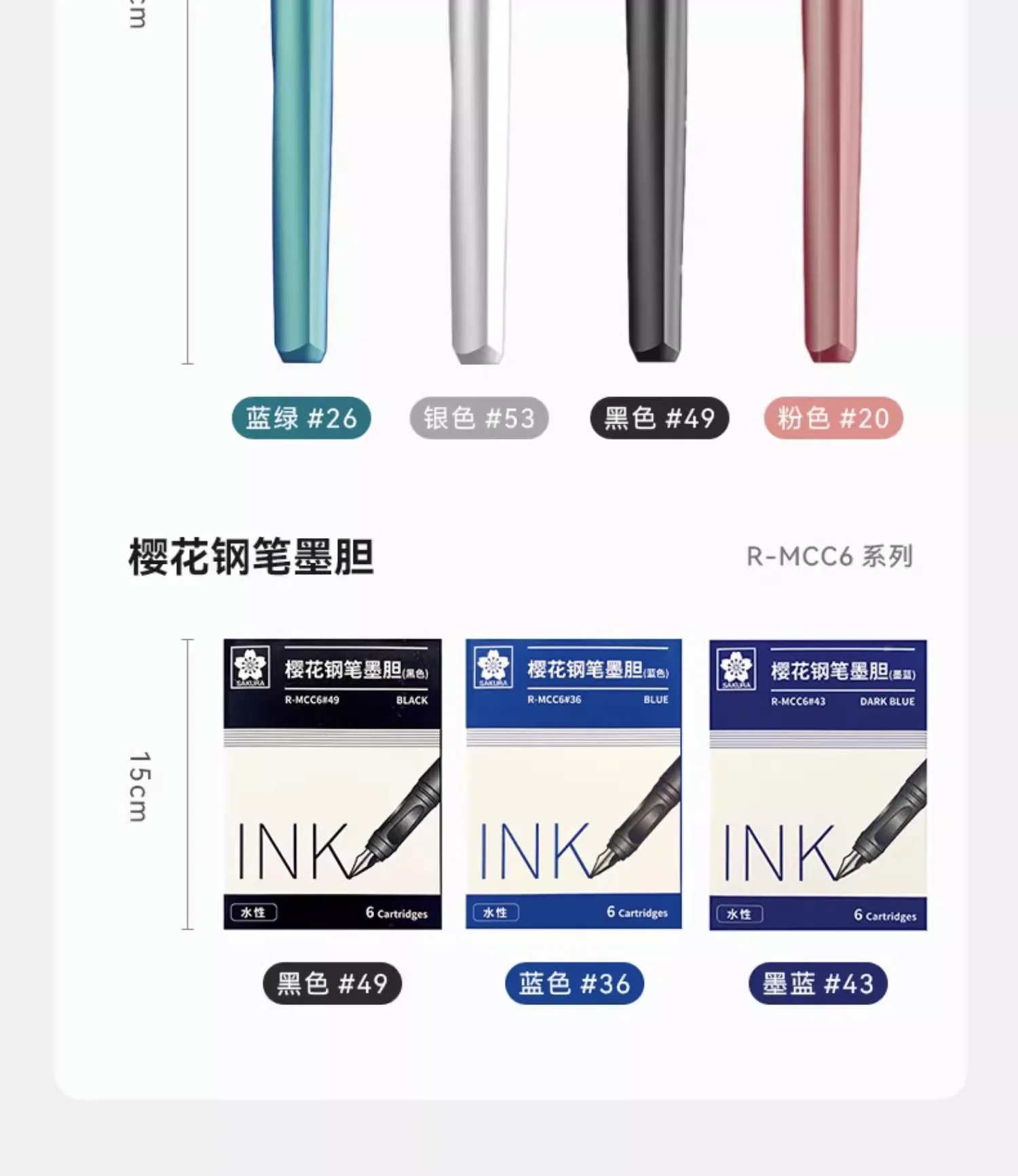 Fountain Pen SAKURA 0.5mm Refillable with Ink Cartridge Japanese