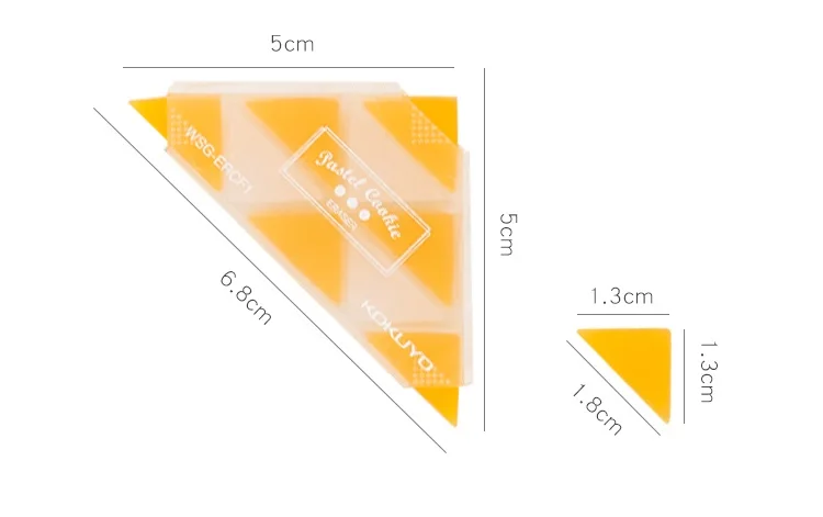 Bring playful precision to your desk with the KOKUYO Triangle Eraser Multi Pastel set. Featuring a charming cartoon design in soft pastel tones, this set of triangle-shaped erasers combines functionality with kawaii appeal. Each eraser measures 5cm × 5cm × 6.8cm and weighs just 17g, making them perfectly portable for students, artists, and stationery lovers alike. Crafted from quality rubber, these erasers effectively remove pencil marks without damaging paper. Ideal for everyday writing, sketching, or as a delightful gift for anyone who appreciates cute desk accessories. Safe for ages 3 and up.